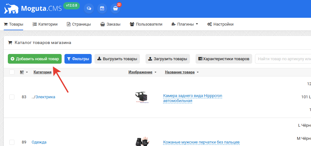 Добавлять товары в Moguta.CMS можно разными способами. Поддерживаются импорты из CSV, XLS, YML(формат Яндекс.Маркета), 1c, МойСклад, ну и конечно же стандартным способом: через админку, вручную. В данном разделе документации мы рассмотрим наиболее простой метод добавления товара - вручную.